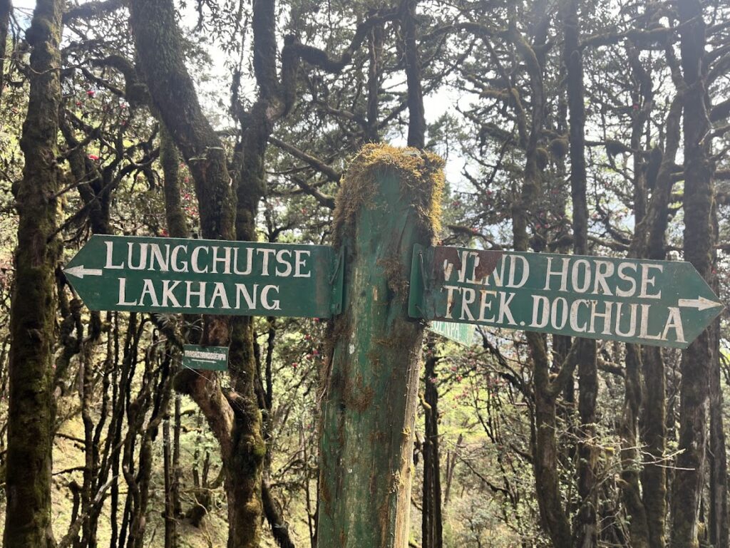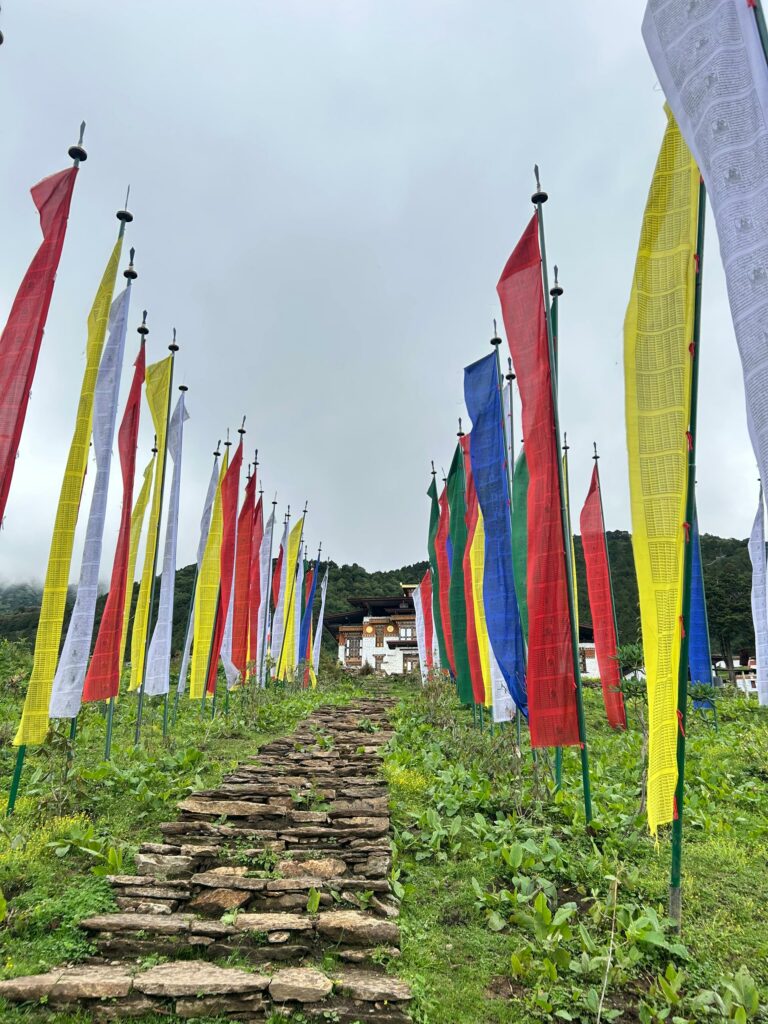 The Lungchutse Hike is a rewarding day trek that begins from Dochula Pass and winds through rhododendron and hemlock forests adorned with prayer flags and moss-covered trees. Taking around 2–3 hours uphill, the trail is moderate in difficulty and offers a peaceful escape into nature. At the summit, hikers are rewarded with breathtaking 360-degree views of the Himalayas, where on clear days, towering peaks such as Masagang, Gangkar Puensum, and Jomolhari rise majestically in the distance, making Lungchutse one of the most scenic and memorable hikes in Bhutan.